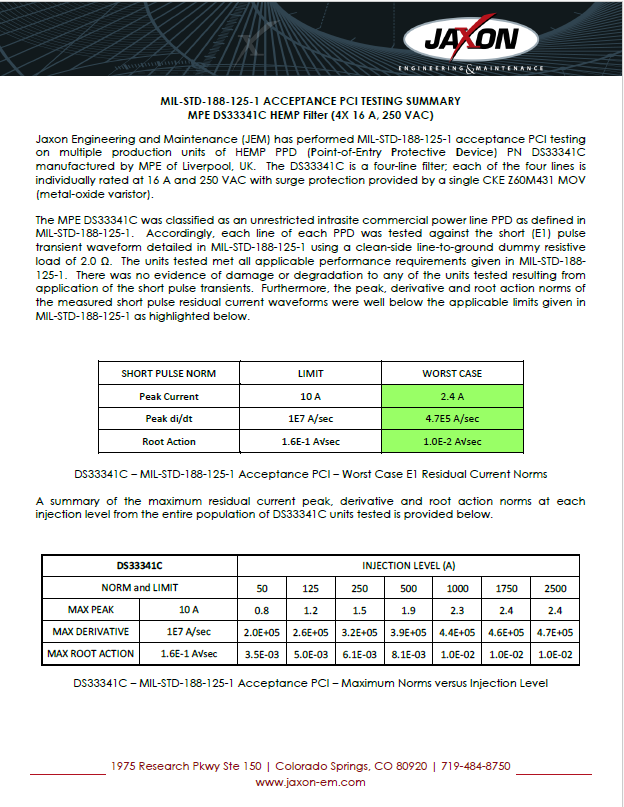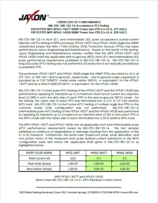 PCI Test Certificates MIL-STD-188-125-1A
